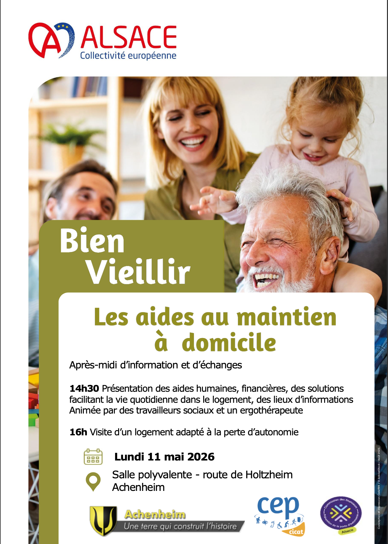 Dans le cadre de l’accompagnement au maintien à domicile, le CCAS organise une réunion d’information en partenariat avec la Collectivité européenne d’Alsace et le CEP CICAT.